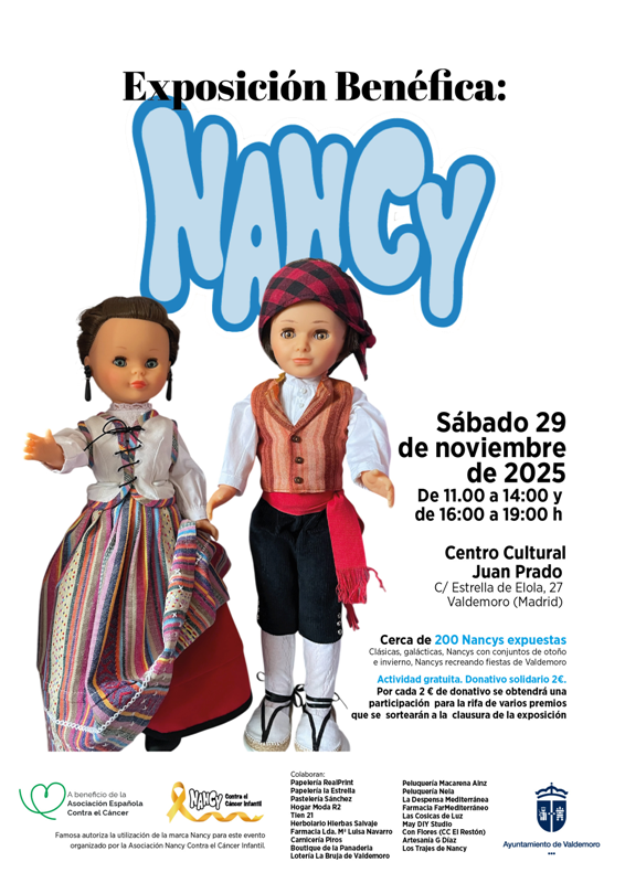 La sala de exposiciones del Centro Cultural Juan Prado acoge, el 29 de noviembre, la exposición benéfica Nancy, dedicada a la histórica y entrañable muñeca de Famosa, en una muestra organizada por la Asociación Nancy Contra el Cáncer Infantil, que cuenta con más de 170 socios y en la que colaboran cerca de una veintena de establecimientos comerciales del municipio.