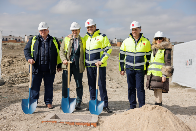 Ya están en marcha las 240 viviendas públicas en alquiler para familias de Valdemoro que la Comunidad de Madrid está construyendo en la calle Agustina de Aragón. La mañana del 2 de marzo, el consejero de Vivienda, Transportes e Infraestructuras, Jorge Rodrigo, y el alcalde de Valdemoro, David Conde, colocaron la primera piedra de una promoción de viviendas a precios asequibles para familias con especiales dificultades para acceder a precios libres.