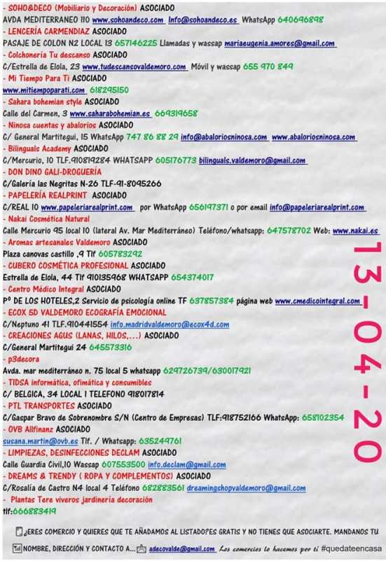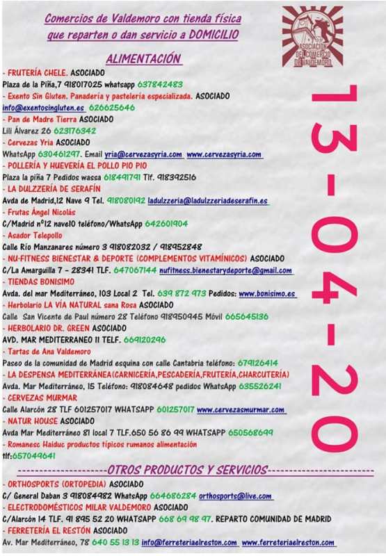 La Asociación del comercio de Valdemoro ha iniciado una campaña de apoyo al comercio local, en estos días de confinamiento por motivo del Covid-19, con la edición de un vídeo  con el siguiente mensaje: «Te necesitamos más que nunca, apoya al comercio de Valdemoro, juntos somos más fuertes».