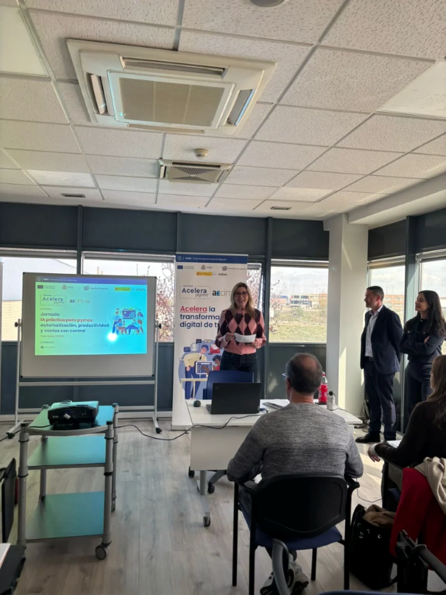 El miércoles 11 de marzo se celebró con gran éxito la jornada “IA práctica para pymes: automatización, productividad y ventas con control”, organizada por la Oficina Acelera Pyme AECIM en colaboración con el Ayuntamiento de Valdemoro.