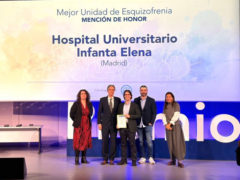 Por su parte, Koldo Berganzo, director de Asistencia Sanitaria de Osakidetza; la Dra. Marina Díaz, presidenta de la Sociedad Española de Psiquiatría; y Beatriz García, de Rovi; fueron las encargadas de entregar la Mención Especial en “Esquizofrenia” a los doctores Enrique Baca y Sergio Benavente, jefes respectivos del departamento y del servicio de Psiquiatría del Hospital Universitario Infanta Elena.