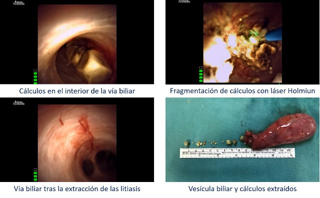 La implementación de la tecnología láser en estos procedimientos permite la fragmentación de los cálculos hasta reducirlos a un tamaño ínfimo, facilitando su extracción a través del conducto cístico o su eliminación a través del intestino, y evitando así la apertura de la vía biliar principal, como venía requiriendo la realización del abordaje quirúrgico convencional.