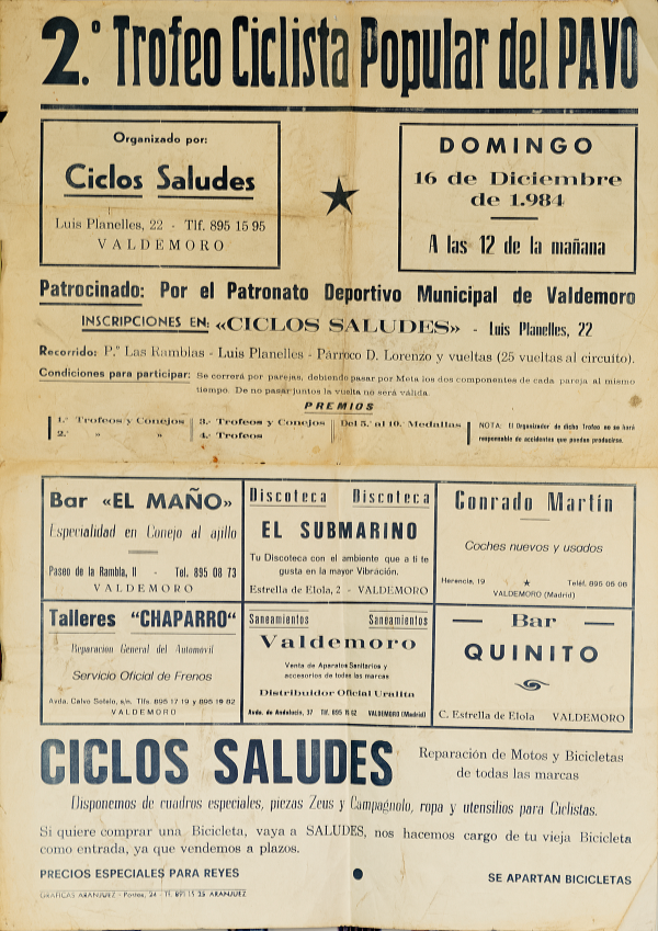 Yo creo que se ha ido apagando con los años. Antes había carreras, había eventos, había movimiento y la bicicleta tenía mucha presencia en el pueblo, tanto a nivel deportivo como social. Ahora hay afición, porque la gente sigue saliendo en bici, pero falta apoyo y organización para que eso se traduzca en algo más visible. Desde mi punto de vista, se ha perdido parte de ese espíritu de pueblo ciclista que había antes; y es una pena, porque Valdemoro tuvo mucha vida alrededor de la bicicleta.
