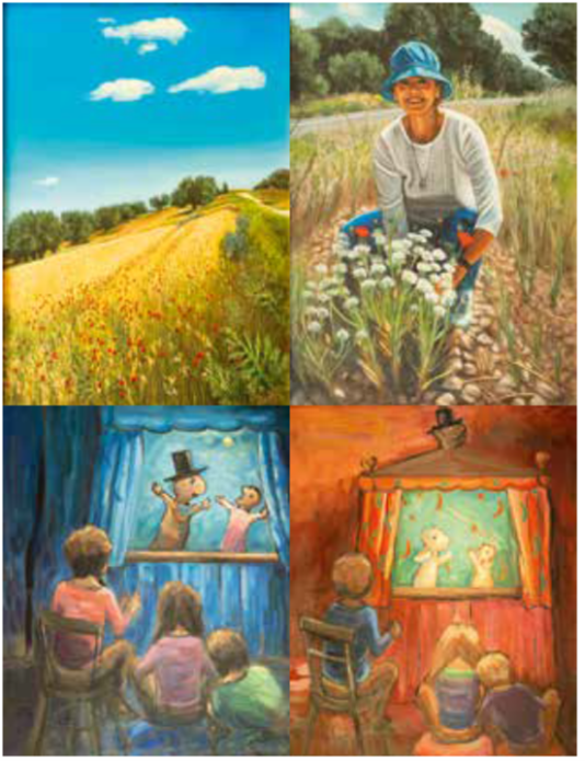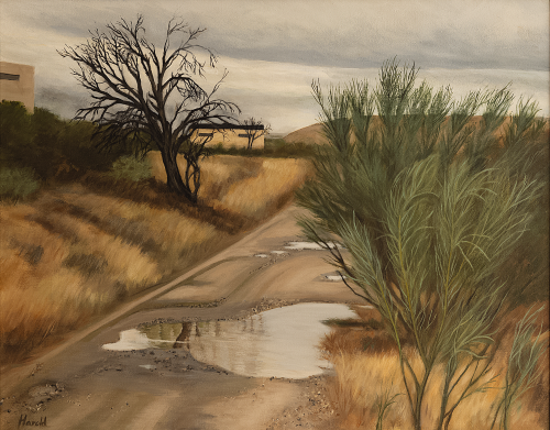 Anna volvió a España y nos casamos en 1974. Gracias a una herencia que ella recibió, compramos una casa en Seseña Viejo, con un jardín y con unas bellas vistas del castillo de Puñoenrostro. Nos había parecido el lugar ideal para trabajar la piedra y crear mis esculturas más grandes. Mis problemas de salud me lo impidieron. Anna y yo nos mudamos a Seseña y comenzamos a enseñar inglés en nuestra casa. Allí vimos otra España, la del mundo rural, y me di cuenta de que todavía había partes de España que no conocía. La gente era muy amable y aprendí mucho sobre este país. Oí historias memorables sobre la Guerra Civil de boca de los mayores del lugar. Cada vez disfrutaba más de la naturaleza y daba largos paseos para conocer nuevas especies de pájaros e insectos. A veces, hasta encontré restos de objetos prehistóricos. Por la noche, oía cantar a los ruiseñores desde el arroyo bajo el castillo y observaba cómo la lechuza volaba hacia la torre de la iglesia. Los paisajes de Seseña pedían ser plasmados de la misma forma que lo habían hecho las corridas de toros años antes. Anna me animó a pintar. Trabajé tanto como me lo permitía mi espalda. Vendimos la propiedad de Seseña y nos mudamos a Valdemoro. Con un poco de suerte, podríamos abrir una academia de idiomas en esta localidad. Compramos un piso en 1978, en Estrella de Elola, y comenzamos nuestras clases de idiomas. Valdemoro era el lugar ideal para este proyecto. Las cosas nos fueron bien. Pronto comencé a escribir y publicar artículos de historia, arte y otros temas que me apasionaban. Y nunca dejé de pintar. Mi mujer enfermó súbitamente con enfisema pulmonar. Su condición empeoró y murió en 2017. Fue un momento muy duro. Vivimos juntos durante muchos años y, cuando murió, daba la sensación de que me faltaba la mitad de Harold Gene Diab.
