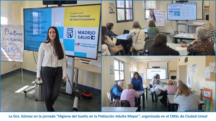 Como parte de su compromiso con la educación sanitaria, el Infanta Elena también ha colaborado con el Centro Municipal de Salud Comunitaria (CMSc) de Ciudad Lineal en la jornada “Higiene del Sueño en la Población Adulta Mayor”, celebrada bajo el lema “Dormir bien, vivir mejor”, de nuevo de la mano de la Dra. Gómez.