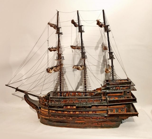 La muestra, perteneciente a la red Itiner de la Comunidad de Madrid, reúne mantones de Manila de diferentes épocas y estilos, junto con otros objetos, como las cajas lacadas en las que viajaba esta prenda ricamente bordada en hilos de seda que simboliza el contacto entre las tres culturas, las monedas de plata acuñadas por la monarquía española en el siglo XVI, diversas postales antiguas y una maqueta del galeón.
