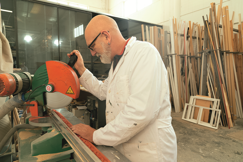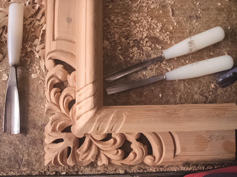 En trabajar la madera para crear marcos que encuadren todo tipo de obras. Se trata de un trabajo artesanal y personalizado que se aleja de la producción en serie estandarizada. Sobre el marco podemos alterar todos los parámetros que lo componen: su tamaño, podemos diseñar marcos a medida con el grueso, alto y ancho que se desee; su forma, contamos con el trabajo de un tallista que altera los perfiles rectos si se desea; el color, trabajamos todo tipo de gamas cromáticas y otros acabados como el pan de oro y de plata; y su textura, ambientamos para aportarle cualquier tipo de acabado, como envejecido, pulido, rugoso, etc.