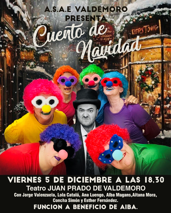 La Asociación de Artes Escénicas de Valdemoro (ASAE) llevará al Teatro Municipal Juan Prado, el próximo 5 de diciembre, el clásico de Dickens Cuento de Navidad, la historia del prestamista avaro y sin escrúpulos que aborrece a sus semejantes y odia la Navidad, y cuya conducta cambiará radicalmente tras esa noche mágica. Argumentos suficientes para ensalzar valores como el amor y la solidaridad, que cobran más notoriedad durante estas fechas.