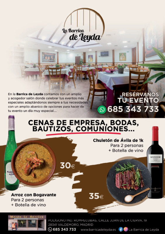 Visita La Barrica de Leyda en la calle Juan de la Cierva, 1 nave 19, del polígono industrial Rompecubas. Para más información y reservas puedes ponerte en contacto en el correo info@barricadeleyda.es o el teléfono 918 014 652. Sigue toda la actualidad de La Barrica de Leyda en su instagram y facebook La Barrica de Leyda.