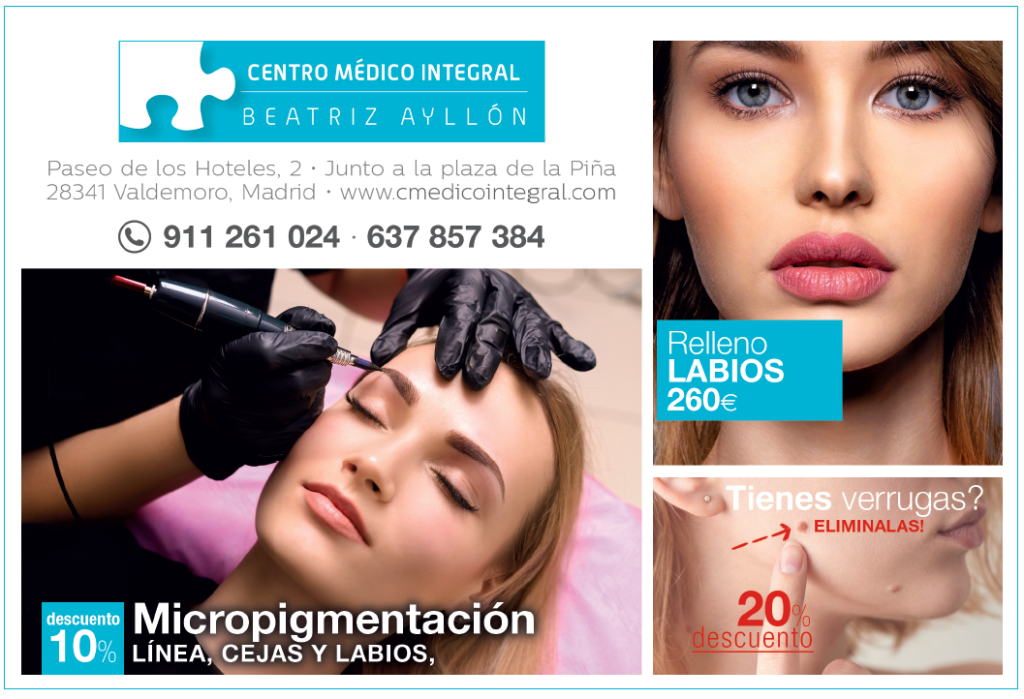 Pide tu cita para una evaluación de la mano de los profesionales de Centro Médico Integral Beatriz Ayllón. Te esperan en el paseo de los Hoteles, 2, de Valdemoro. Más información en los teléfonos: 637 857 384 y 911 261 024.