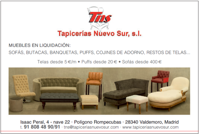 Tapicerías Nuevo Sur abre las puertas de sus talleres y exposición para que puedas ver el proceso de fabricación del mueble y pases por su exposición, donde serás atendido por personal cualificado, que te ayudará y aconsejará sobre los mejores tejidos y acabados, siguiendo y manteniendo tu gusto e idea originales.