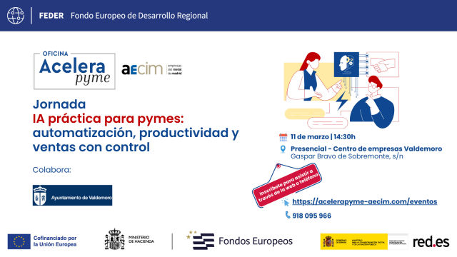La transformación digital sigue avanzando y la inteligencia artificial se ha convertido en una herramienta clave para mejorar la competitividad empresarial. Con el objetivo de acercar estas tecnologías al tejido empresarial local, la Oficina Acelera Pyme de AECIM, en colaboración con el Ayuntamiento de Valdemoro, organizará una jornada gratuita y presencial dirigida a pymes y emprendedores de la zona.